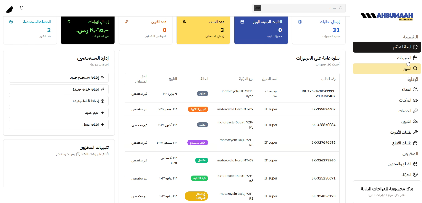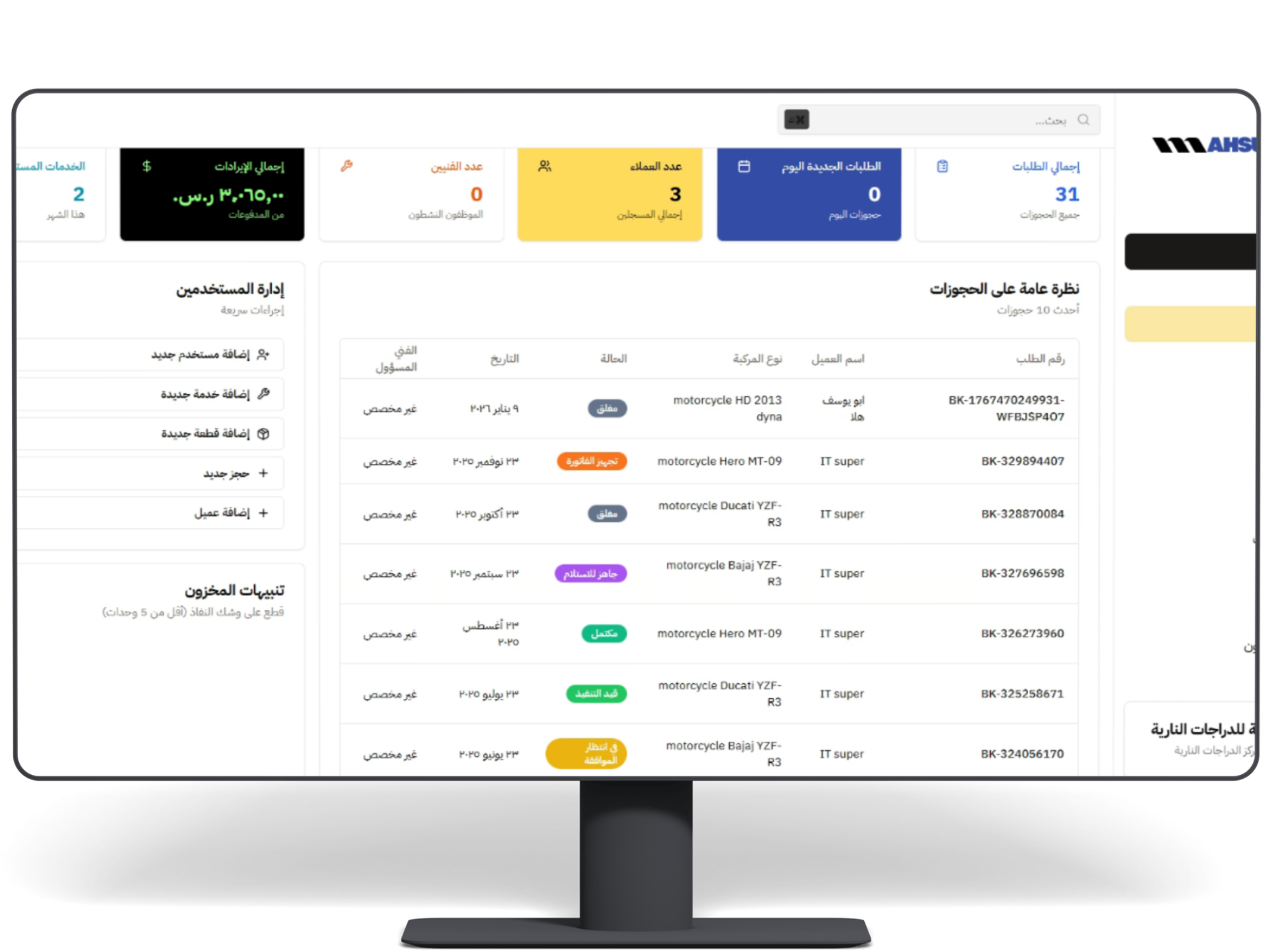 محسومة تقدّم مجموعة أدوات مصممة خصيصًا لورش الصيانة، تساعدك على التحكم الكامل في العمليات اليومية، تحسين الأداء، واتخاذ قرارات مبنية على بيانات حقيقية.