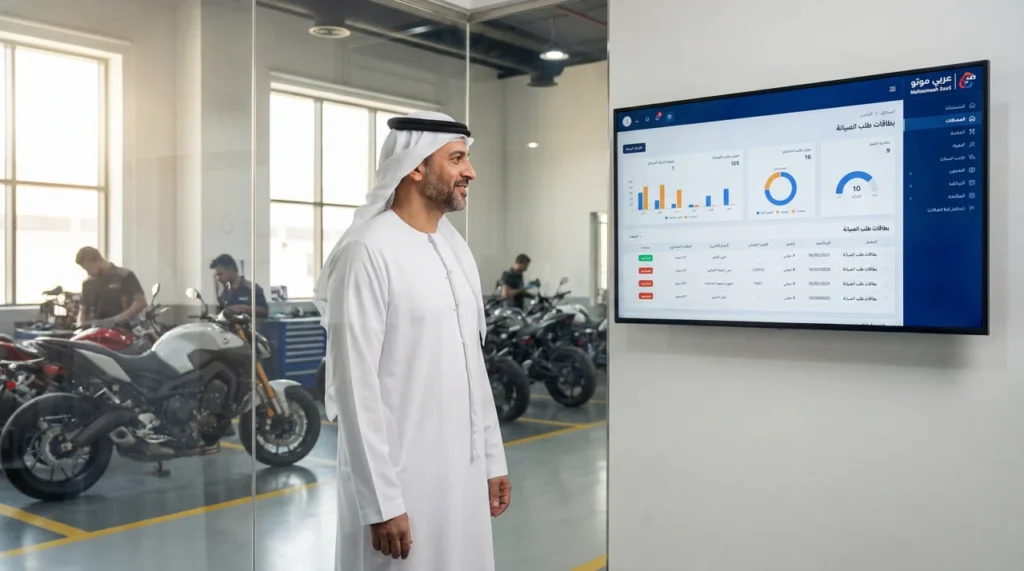 التحول الرقمي ليس مجرد استخدام كمبيوتر بدلاً من دفتر، بل هو إعادة تنظيم طريقة العمل بحيث تصبح المعلومات مخزنة ومترابطة وقابلة للتحليل. في ورشة الدراجات النارية، هذا يعني أن كل دراجة لها سجل رقمي، وكل طلب له حالة، وكل فاتورة مسجلة ويمكن الرجوع إليها في ثوانٍ.